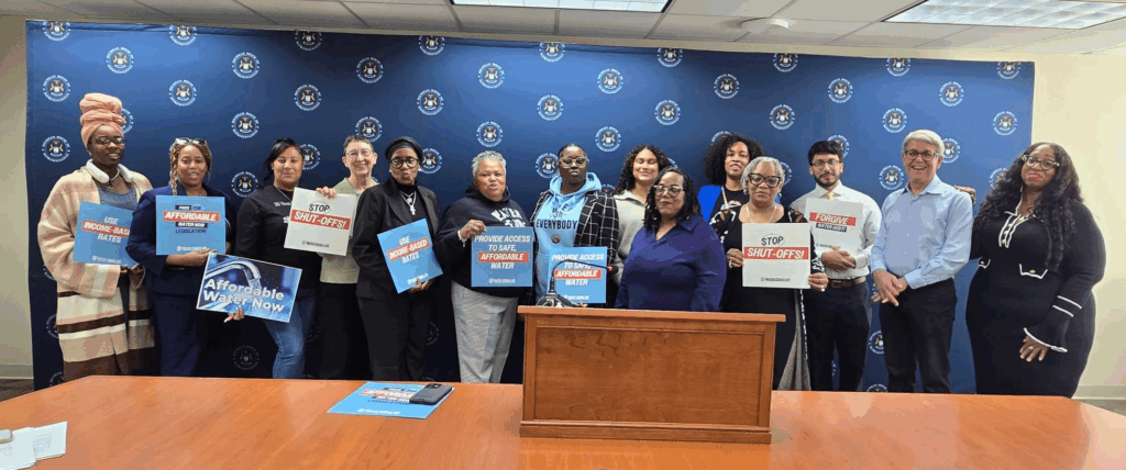 WEL Coalition advocates celebrate the introduction of Michigan’s Affordable Water Now Legislative Package in Lansing, Michigan, on October 29, 2025.